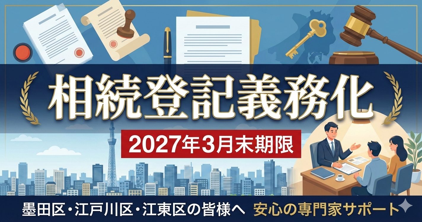 相続によって不動産を取得された墨田区・江戸川区・江東区の皆様、2024年4月から施行された「相続登記義務化」について、適切に対応できていますでしょうか?