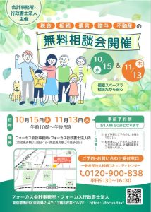 いつも弊社ホームページをご覧くださり、誠にありがとうございます。 10月・11月の個別相談会のお知らせです。 【日程】10月15日㈬・11月13日㈭ 午前10時~午後2時(各回50分 完全予約制) 【 ...